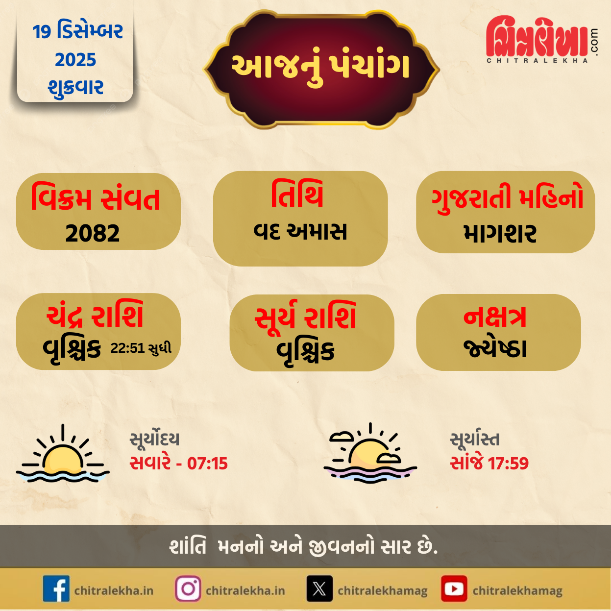પંચાંગ 19/12/2025