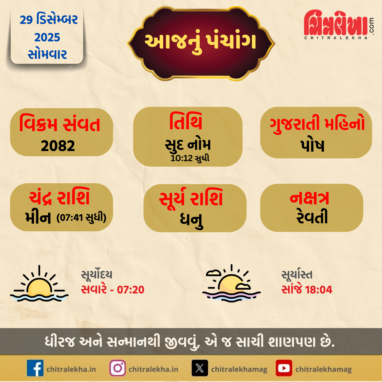 પંચાંગ 29/12/2025