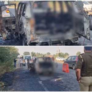 મોડાસામાં એમ્બ્યુલન્સમાં ભભૂકી આગ, નવજાત સહિત 4 લોકો ભડથું