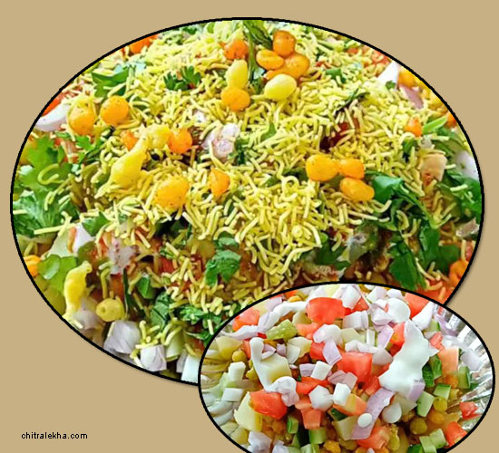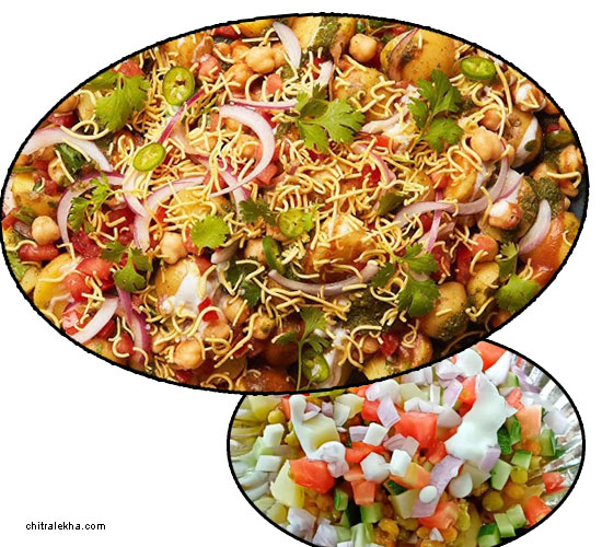 સામગ્રીઃ ચાટ મસાલો ½ ટી.સ્પૂન, જીરૂ પાઉડર 1 ટી.સ્પૂન, સંચળ (કાળું મીઠું) ¼ ટી.સ્પૂન, સાદું મીઠું ¼ ટી.સ્પૂન, કાશ્મીરી મરચાં પાઉડર 1 ટી.સ્પૂન, દહીં 1 કપ, દળેલી સાકર ½ ટી.સ્પૂન, બાફેલા બટેટા 2, કાકડી 1, ટામેટાં 2, કાંદા 2, લીલા મરચાં 2, ચણાના લોટની મોળી તેમજ મસાલાવાળી તીખી બુંદી 1-1 કપ, ધોઈને સમારેલી કોથમીર 1 કપ, કોથમીર-ફુદીનાની તીખી ચટણી 1 કપ, આમલી-ગોળવાળી ખટમીઠી ચટણી 1 કપ, ચણાના લોટની મોળી સેવ 1 કપ,