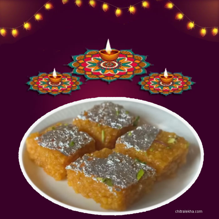 2 કલાક બાદ મિશ્રણ ઠરે એટલે મીઠાઈના ચોસલા પાડીને ખાવાના ઉપયોગમાં લો.