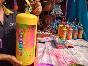 વેપારી વાસુભાઈ ચિત્રલેખા.કોમને કહે છે આ વર્ષે ફાયરમાં એટલે કે આગ ઓલવવામાં વપરાતા સિલિન્ડર જેવા આકારમાં રંગોની માંગ વધી છે. વિવિધ રંગોથી ભરેલા સિલિન્ડર બે કિલો, ચાર કિલો, છ કિલોમાં ઉપલબ્ધ છે. સિલિન્ડરની પીન ખોલી દેતાં એક સાથે જ તમામ કલર ઠલવાઈ જાય છે.