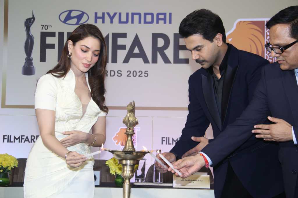 એવોર્ડ સીઝન આવી ગઈ છે અને સૌથી મોટા સમારોહનું કાઉન્ટડાઉન શરૂ થઈ ગયું છે! ગુજરાત ટુરિઝમના સહયોગથી 70મો હ્યુન્ડાઇ ફિલ્મફેર એવોર્ડ્સ 2025, 11 ઓક્ટોબરના રોજ ગુજરાતના અમદાવાદના EKA એરેના ખાતે યોજાનાર છે. ફિલ્મફેર એવોર્ડ અંગે આજે મુંબઈમાં પ્રેસ કોન્ફરન્સનું આયોજન કરવામાં આવ્યું હતું. જેમાં તમન્ના ભાટિયા અને અભિનેતા રાજકુમાર રાવે હાજરી આપી હતી.