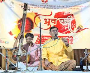 ધ્રુવ પર્વ- સાતમા ઉદગમ મ્યુઝિક ફેસ્ટિવલમાં તા.૩૧ ઓકોટબર ૨૦૨૫ના શાસ્ત્રીય સંગીતના સાધક અને બનારસથી સિદ્ધ વીણા વાદક પંડિત સિદ્ધાર્થ બેનર્જીએ સિદ્ધ વીણામાં વિવિધ રાગની પ્રસ્તુતિથી કરી અને ત્યારબાદ ગોસ્વામી શ્રી રણછોડલાલજી મહોદયએ વૈષ્ણવ હવેલીમાં ગવાતાં વિવિધ પદ ગાયનથી શ્રોતાઓને મંત્રમુગ્ધ કરી દીધા હતા.૦૧ નવેમ્બર ૨૦૨૫ ના સુશ્રી શિવાની કિનારીવાલાએ દેવઉઠી એકાદશીના ઉપલક્ષ્યમાં હવેલી સંગીતના અદભુત પદોની પ્રસ્તુતિથી સહુને ભક્તિમય કરી દીધા તથા સુરતના ગોસ્વામી શ્રી જયવલ્લભલાલજી મહોદય સંતૂર ની સાથે તબલા પાર શ્રી રસિકપ્રીતમજી મહોદયએ અવર્ણીય પ્રસ્તુતિ કરી અને અંતે પંડિત જસરાજના શિષ્ય ઉદેપુરના સમર્થ જાન્વે શાસ્ત્રીય સંગીતમ વિવિધ ભજન અને અંતે માતા કાલિકાથી સ્તુતિથી અવર્ણીય અને અદભુત વાતાવરણ ઉભું કરી દીધું હતું.