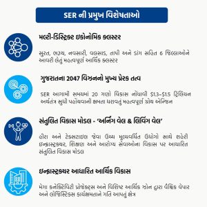 ભારત સરકાર દ્વારા સુરત ઇકોનોમિક રિજિયન (SER)ને વિશ્વનાં નકશા પર મૂકવા માટે એક માસ્ટર પ્લાન તૈયાર કરવામાં આવ્યો હતો અને બરોબર 17 મહિના પહેલા આ માસ્ટર પ્લાનનો મુખ્યમંત્રીના હસ્તે સુરતમાં લોન્ચ કરવામાં આવ્યો હતો. આ માસ્ટર પ્લાનનો હેતુ વર્ષ-2047 સુધી સુરત શહેર અને સમગ્ર દક્ષિણ ગુજરાતને દેશના મહત્વપૂર્ણ આર્થિક વૃદ્ધિ કેન્દ્ર તરીકે વિકસાવવાનો છે.