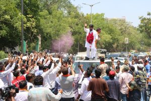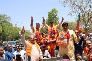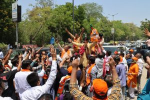 પાંખી હાજરી વચ્ચે જીતેલા કેટલાક ઉમેદવારો કાર્યકર્તાના હાર પહેરી ગુલાલ ઉડાડી ખુલ્લી જીપો, ડી.જે સાથે જીત પછી રેલી સાથે પોતાના વિસ્તાર તરફ રવાના થયા.(પ્રજ્ઞેશ વ્યાસ – અમદાવાદ)