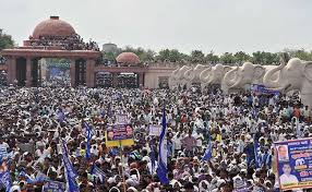 Lucknow, Uttar Pradesh: Huge crowd gathers for BSP’s Maha Rally to be addressed by BSP Chief Mayawati