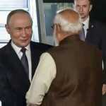 રશિયાના રાષ્ટ્રપતિ વ્લાદિમીર પુતિન ભારત પહોંચ્યા છે. પ્રધાનમંત્રી નરેન્દ્ર મોદીએ પાલમ એરપોર્ટ પર પુતિનનું ઉષ્માભર્યું સ્વાગત કર્યું. પ્રધાનમંત્રીએ પહેલા રશિયન રાષ્ટ્રપતિને ગળે લગાવ્યા અને પછી હાથ મિલાવ્યા. આ દરમિયાન, બંને નેતાઓ વચ્ચે આકર્ષક કેમેસ્ટ્રી જોવા મળી. ભારતમાં પહોંચતા પહેલા પુતિને કહ્યું હતું કે, “હું મારા મિત્ર નરેન્દ્ર મોદીને મળવા માટે આતુર છું.