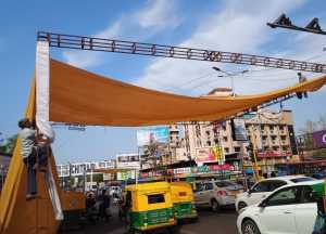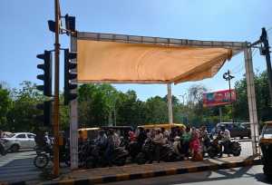 અમદાવાદ મ્યુનિસિપલ કોર્પોરેશન દ્વારા હિટ એક્શન પ્લાન તૈયાર કરવામાં આવ્યો છે. જેના ભાગરૂપે શહેરના મોટા ટ્રાફિક સિગ્નલો પર ઝેબ્રા ક્રોસિંગ પાસે માંચડા તૈયાર કરી છાંયડો આવે એવી નેટ મુકવામાં આવી છે. સો દોઢસો સેકંડ પર સિગ્નલ ખુલવાની રાહ જોતાં વાહન ચાલકોને છાંયો મળે એવો પ્રયત્ન કરવામાં આવ્યો છે. ટ્રાફિક જંકશનો પર ટ્રાફિક પોલીસની સાથે મળીને નિરાંત ચાર રસ્તા, સી.ટી.એમ.ચાર રસ્તા, વિક્ટોરિયા ગાર્ડન ચાર રસ્તા, પુષ્પકુંજ ચાર રસ્તા, જવાહર ચોક ચાર રસ્તા , મેમ્કો ચાર રસ્તા પર નેટ લગાવવામાં આવેલ છે.