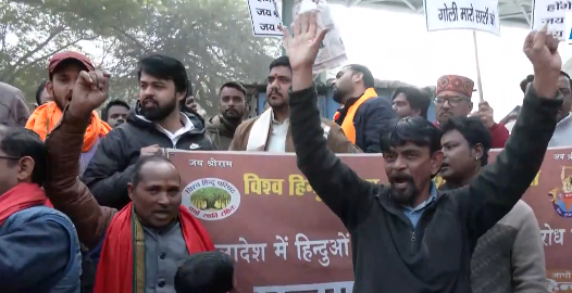 બાંગ્લાદેશમાં હિન્દુઓ પર થઈ રહેલા અત્યાચાર અને દીપુ ચંદ્ર દાસની મોબ લિંચિંગ સામે વિશ્વ હિન્દુ પરિષદ (VHP) અને અન્ય હિન્દુ સંગઠનો દિલ્હીમાં વિરોધ પ્રદર્શન કરી રહ્યા છે. આ પ્રદર્શન બાંગ્લાદેશ હાઈ કમિશનની બહાર થઈ રહ્યું છે.