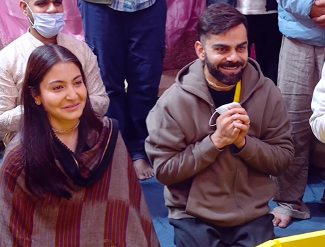 સ્ટાર ભારતીય ક્રિકેટર વિરાટ કોહલી અને તેમની પત્ની, અભિનેત્રી અનુષ્કા શર્મા તાજેતરમાં વૃંદાવનની મુલાકાતે આવ્યા હતા, જ્યાં તેઓ વરાહ ઘાટ ખાતે શ્રી હિત રાધા કેલી કુંજ આશ્રમમાં સંત પ્રેમાનંદ જી મહારાજને મળ્યા હતા. આ દરમિયાન બંનેએ મહારાજ સાથે ખાનગી આધ્યાત્મિક વાતચીત કરી હતી, જેનો એક વીડિયો સોશિયલ મીડિયા પર ઝડપથી વાયરલ થઈ રહ્યો છે. ભજન માર્ગના સત્તાવાર ઇન્સ્ટાગ્રામ હેન્ડલ દ્વારા શેર કરાયેલ આ વીડિયોમાં પ્રેમાનંદ જી મહારાજ વિરાટ અને અનુષ્કાને જીવન અને કર્મ સંબંધિત મહત્વપૂર્ણ પાઠ આપતા જોવા મળે છે.