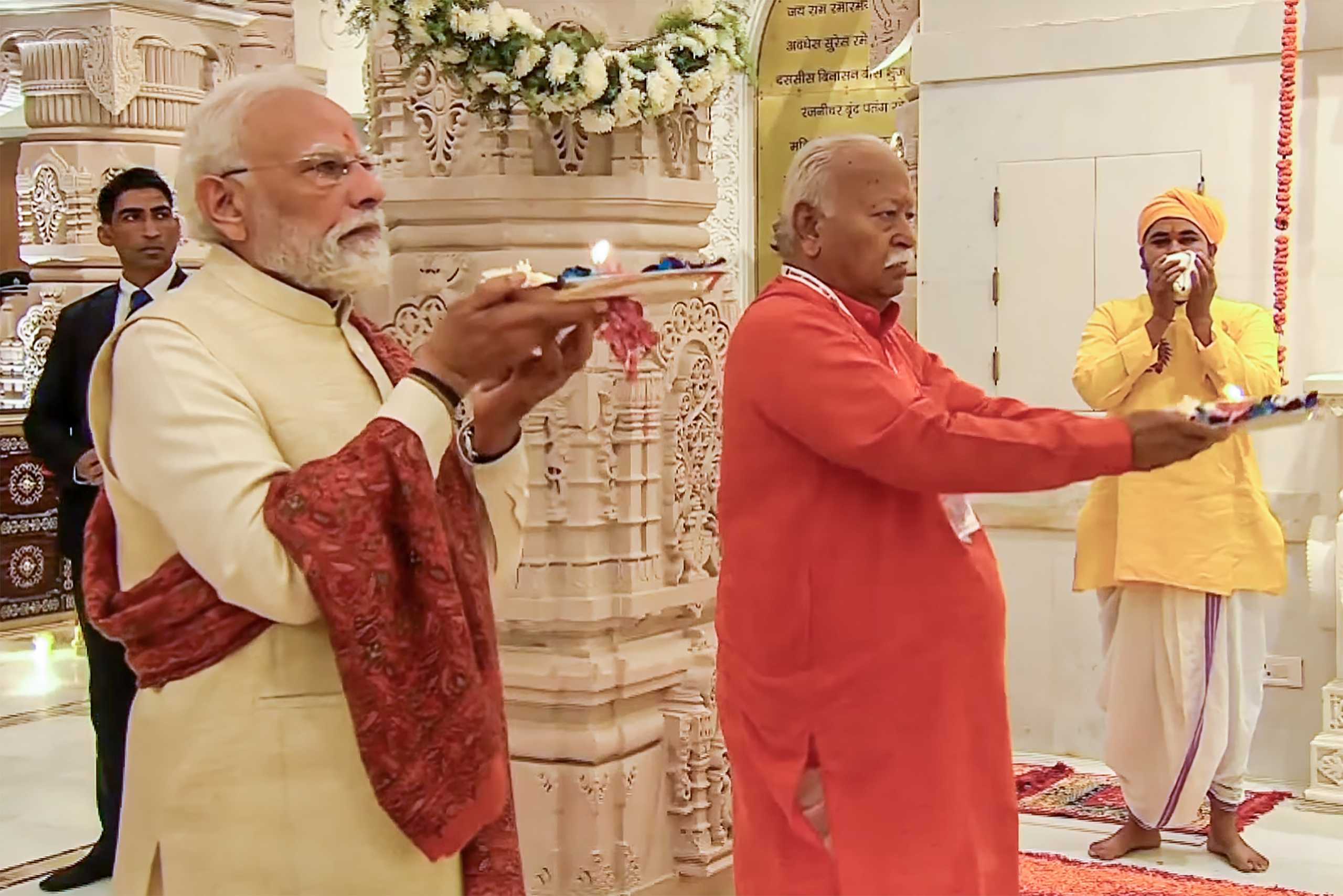 RSS પ્રમુખ મોહન ભાગવતે કહ્યું હતું કે આજે કરોડો લોકોની આસ્થા સ્વીકારવામાં આવી છે. મંદિર નિર્માણ પૂર્ણ થયું છે.
