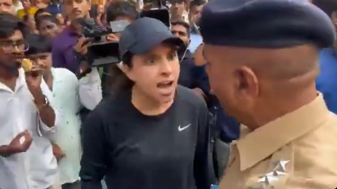રેલીની વચ્ચે પહોંચીને, તેણીએ પોતાનો ગુસ્સો ઠાલવ્યો. ટ્રાફિક જામથી પરેશાન થયેલી મહિલા પોતાની કારમાંથી ઉતરી અને સીધી વિરોધ રેલીની વચ્ચે પહોંચી ગઈ. તેણીએ મંત્રી અને કાર્યકરો સાથે ઉગ્ર બોલાચાલી કરી. રાજકીય રેલીઓ દ્વારા જનતાને થતી અસુવિધા અંગે પ્રશ્ન ઉઠાવતા, તેણીએ કઠોર ભાષાનો ઉપયોગ કર્યો અને ભીડને વિખેરાઈ જવા કહ્યું, વિરોધીઓ પર બૂમ પાડી, “ગેટ આઉટ ફ્રોમ હિયર! તમે ટ્રાફિક અવરોધિત કરી રહ્યા છો.”