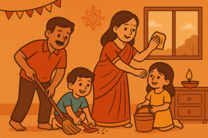દિવાળીના દિવસોમાં જ્યારે ઘરની સફાઈ કરવામાં આવે છે, ત્યારે બાળકોને પણ એમાં જોડવા જોઈએ. એમને મનગમતા નાના કામ સોંપવાથી માત્ર મદદરૂપ બનવાની ટેવ જ નહીં પડે, પરંતુ ઘરની વ્યવસ્થા અને ઓર્ગેનાઈઝ રહેવાની સમજણ પણ વિકસે છે. માતા-પિતા સાથે મળીને કામ કરતા બાળકોમાં ટીમ બિલ્ડિંગની ભાવના પણ ઉભી થાય છે. આવી પ્રક્રિયા આનંદદાયક હોય છે. કારણ કે, ઘણીવાર આ દરમિયાન જૂના ફોટોગ્રાફ્સ જોવા મળે, જૂની યાદો તાજી થાય અને પરિવારના સંબંધો વધુ મજબૂત બને છે.